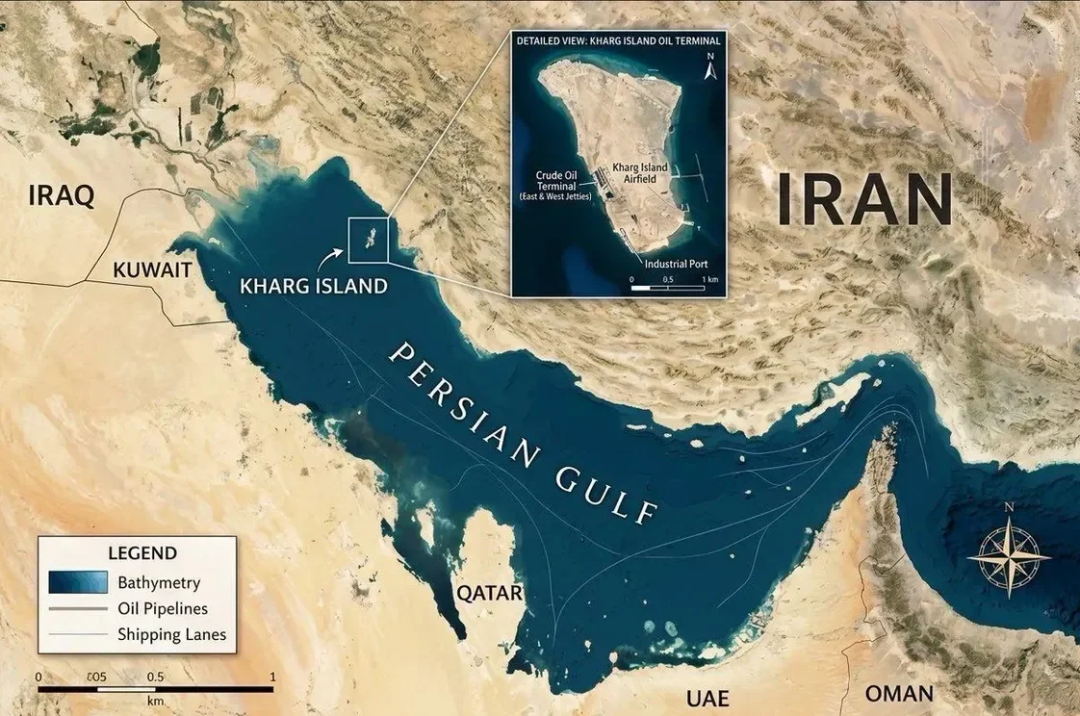 哈尔克岛位于波斯湾西北部,距离伊朗海岸大约25公里,是伊朗最大原油出口基地,伊朗90%的原油都从这里出口。